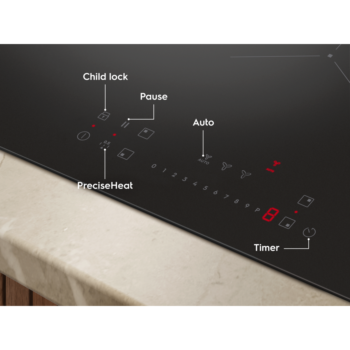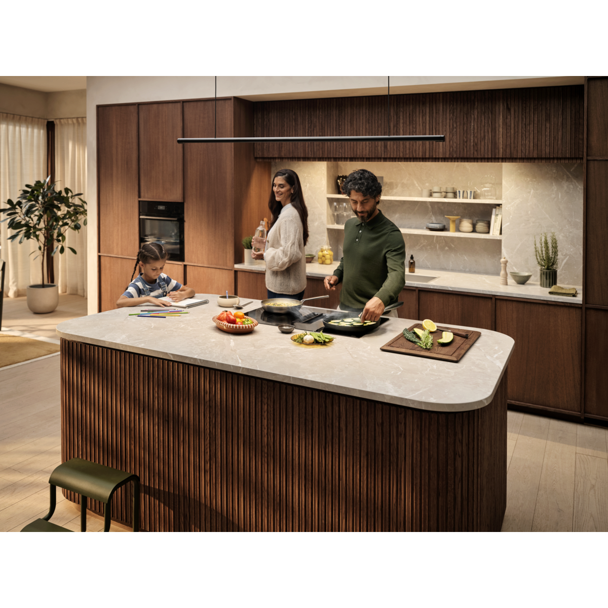 Svoboda načrtovanja kuhinje: kombinirajte hitrost, zmogljivost in učinkovitost indukcijske kuhalne plošče z vgrajeno napo, da si jo lahko postavite na poljubno mesto.
