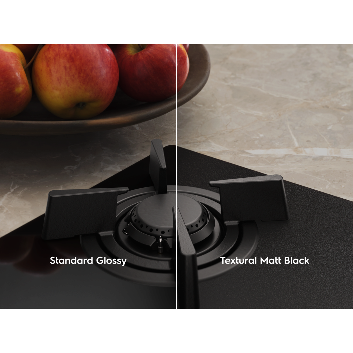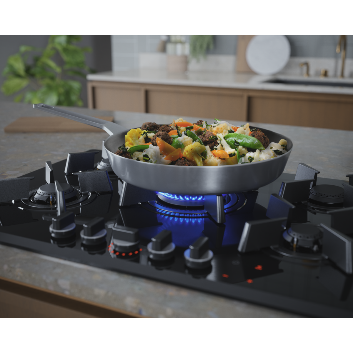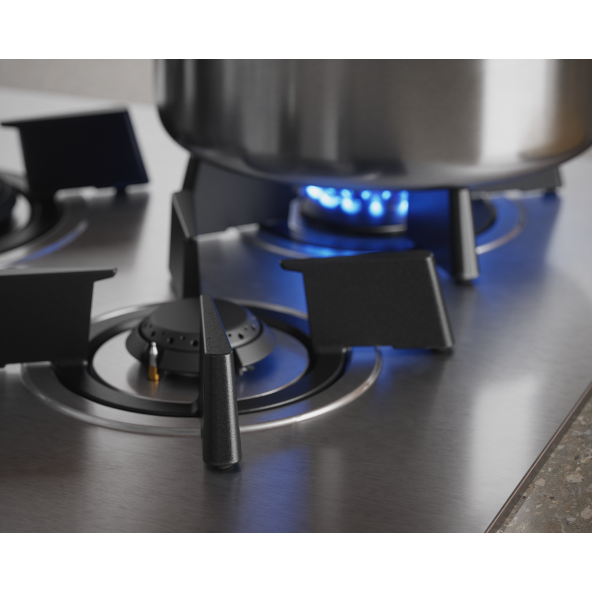 Navpični kuhalnik z mat črnimi gorilniki je primeren za pomivanje v pomivalnem stroju in s hitrejšim segrevanjem prihrani do 20 % energije. Natančnejši plamen segreva le ponev, ki jo uporabljate, za večjo učinkovitost.