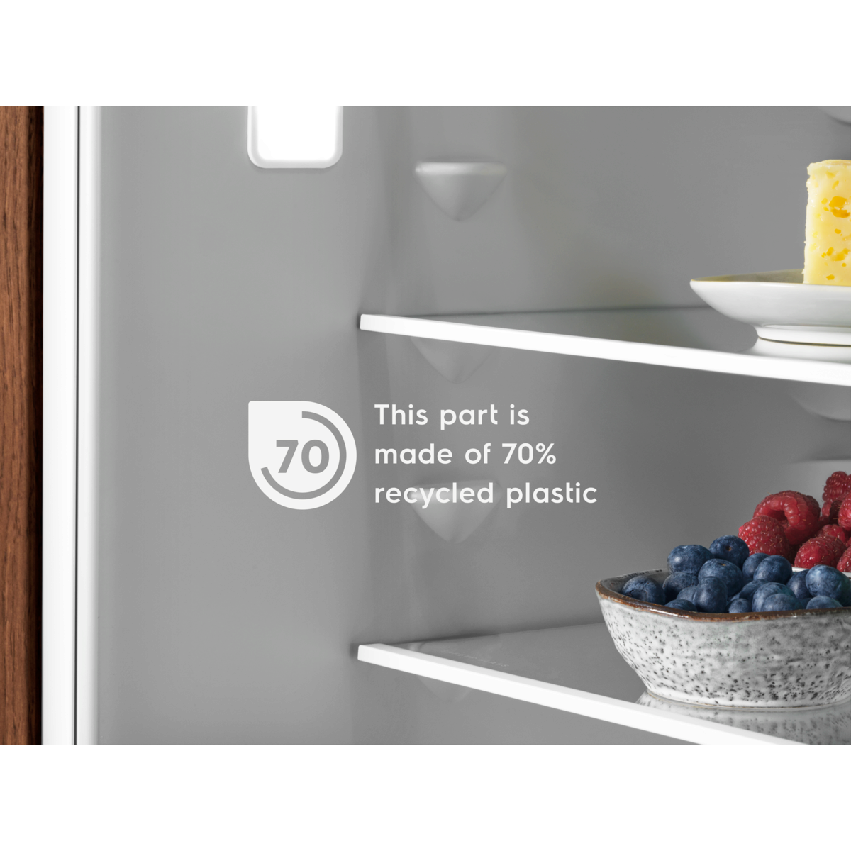 * Notranja obloga rHIPS je izdelana iz 70 % reciklirane plastike, kar predstavlja 13 % vse plastike v hladilniku