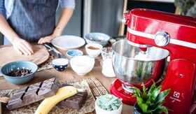 Pečico segrejte na 180 °C. V posodi zmešajte pretlačene banane, kokosovo olje, agavin sirup in semena chia z vodo. Dobro premešajte. Dodajte moko in pecilni prašek.