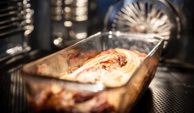 Pecite 35-40 minut ali dokler zobotrebec, ki ga zapičite v sredino, ni suh. Preden ga narežete počakajte, da se malo ohladi.