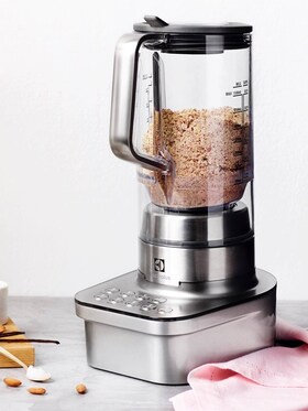 3. Lešnike damo v mešalnik Masterpiece in dodamo kokosovo olje. Mešamo okoli 10 minut, da maslo postane gladko in kremasto.