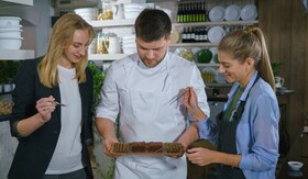 Nastavimo pečico CombiSteamPro v način za peko Hot Steam in jo segrejmo na 170 stopinj Celzija. Na pekač položimo papir za peko in vlijemo maso za testo. Pekač položimo v segreto pečico za 25 minut. Ko so čokoladni rjavčki pečeni, pustimo, da se malce ohladijo, in jih narežemo na majhne koščke.