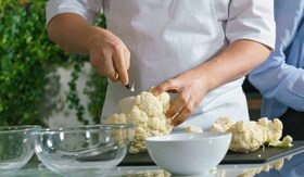 Cvetačo narežite na kose. Odrežite sam vrh grozda in ga shranite ter naredite iz njega zmes v obliki kuskusa. Izberite nekaj najboljših kosov in jih tanko narežite z rezalnikom.