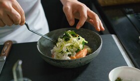 Privoščite si zdrav obrok iz preprostih in okusnih nordijskih sestavin. V tem receptu losos, ki je izvrsten vir omega 3 kislin, kuhamo po vakumski metodi SousVide s paro, pri čemer ohranimo vse vitamine in minerale. Nato ga dodamo cvetači in z vitaminsko bogatemu ohrovtu ter tako dobimo svežo in okusno jed.