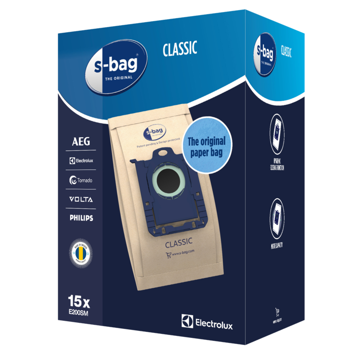 Vrečka s-bag® Classic je visokokakovostna papirnata vrečka, ki zadrži več kot 90 % prahu in delcev, zaradi česar je bolj učinkovita od običajnih papirnatih vrečk za sesalnik.