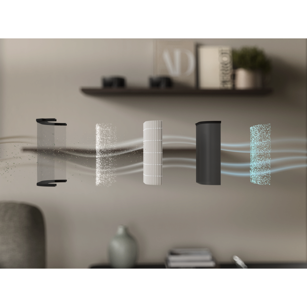 Metodično zmanjša PM2,5 in ultrafine onesnaževalce v zraku. Vsebuje ultrafini filtrirni material, ki se uporablja v filtrih HEPA 13* in lahko filtrira do 99,97 % onesnaževalcev v zraku.