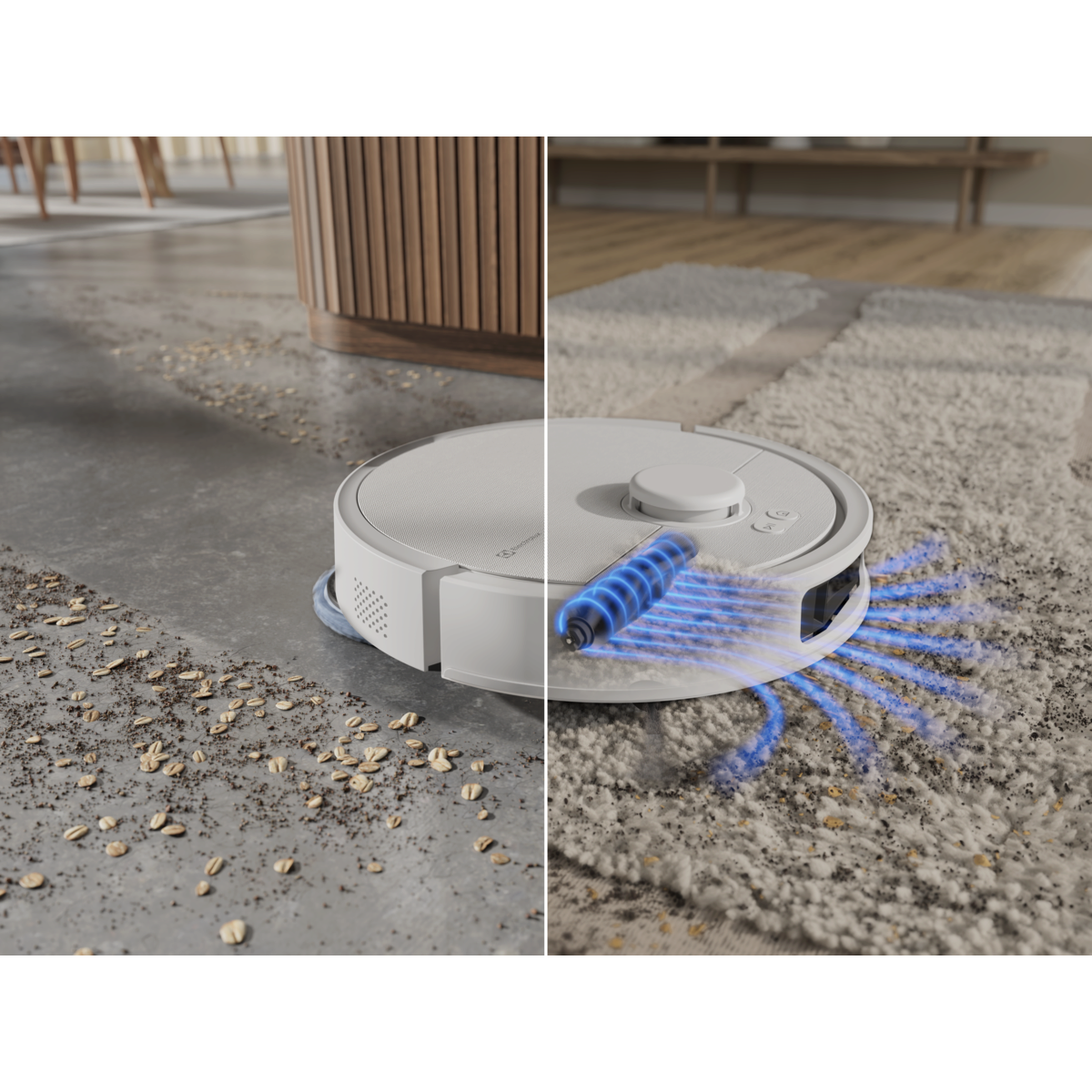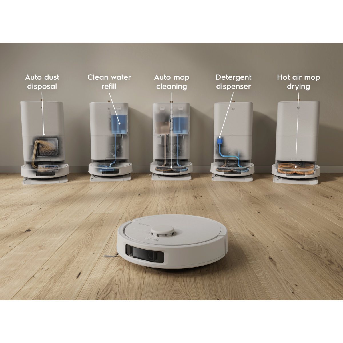 Nič več sesanja in pomivanja tal. Robotski sesalnik 800 z večnamensko postajo čisti tudi, ko vas ni. Nastavite in pozabite – robotski sesalnik se brez težav premika pod pohištvom, čisti preproge, briše tla in odstranjuje umazanijo brez napora.