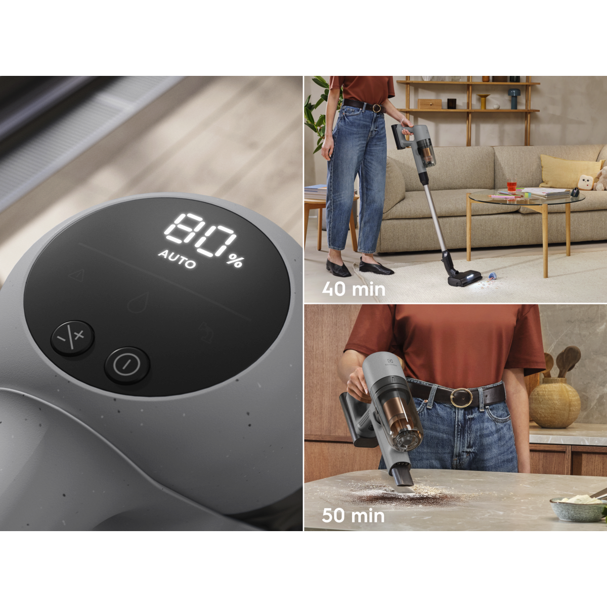 *V primerjavi s časom delovanja v načinu Boost. **Na podlagi internih preizkusov v skladu z IEC 62885-4, ki merijo čas delovanja ročne enote in celotnega sesalnika v min. načinu.