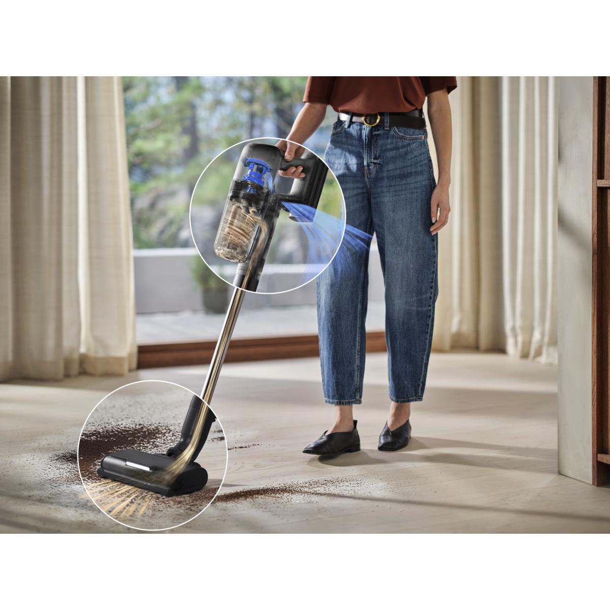 *V primerjavi s časom delovanja v načinu Boost. **Na podlagi internih preizkusov v skladu z IEC 62885-4, ki merijo čas delovanja ročne enote in celotnega sesalnika v min. načinu.