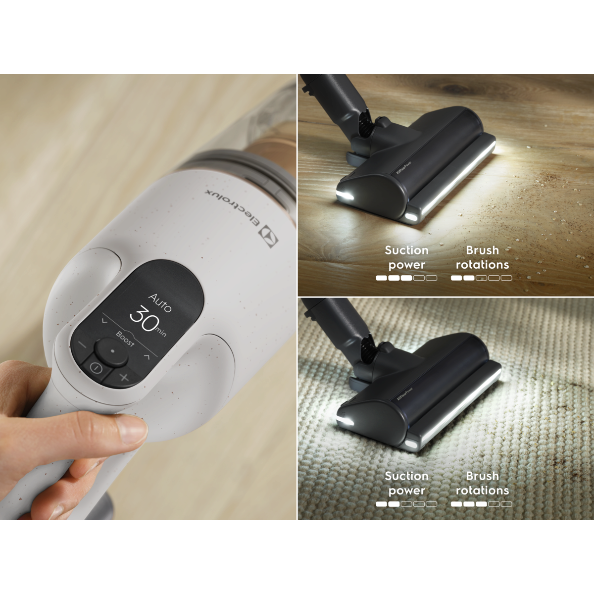 *Čas delovanja je bil izmerjen v načinu visoke hitrosti. Pobiranje prahu je bilo preizkušeno v skladu s standardom IEC 62885-2 ob upoštevanju povprečnega rezultata pobiranja prahu 5,2 oz. 5,3 (v obe smeri) na trdih tleh. Na podlagi primerjave s šestimi najbolje prodajanimi ročnimi sesalniki s ceno nad 490 EUR v štirih evropskih državah (od oktobra 2024 do septembra 2025).