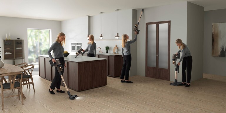 Privoščite si popolnoma čist dom hitro in enostavno z enim polnjenjem baterije. Neverjetna sesalna moč odstrani nečistoče z vsake površine. Odkrijte sesalnik, ki se v največji možni meri prilagodi vašemu življenjskemu slogu.